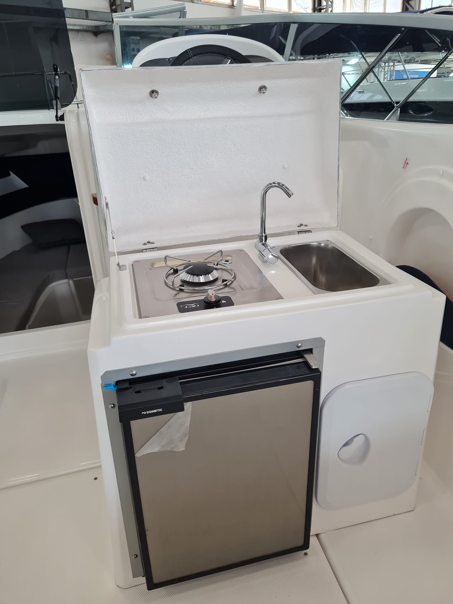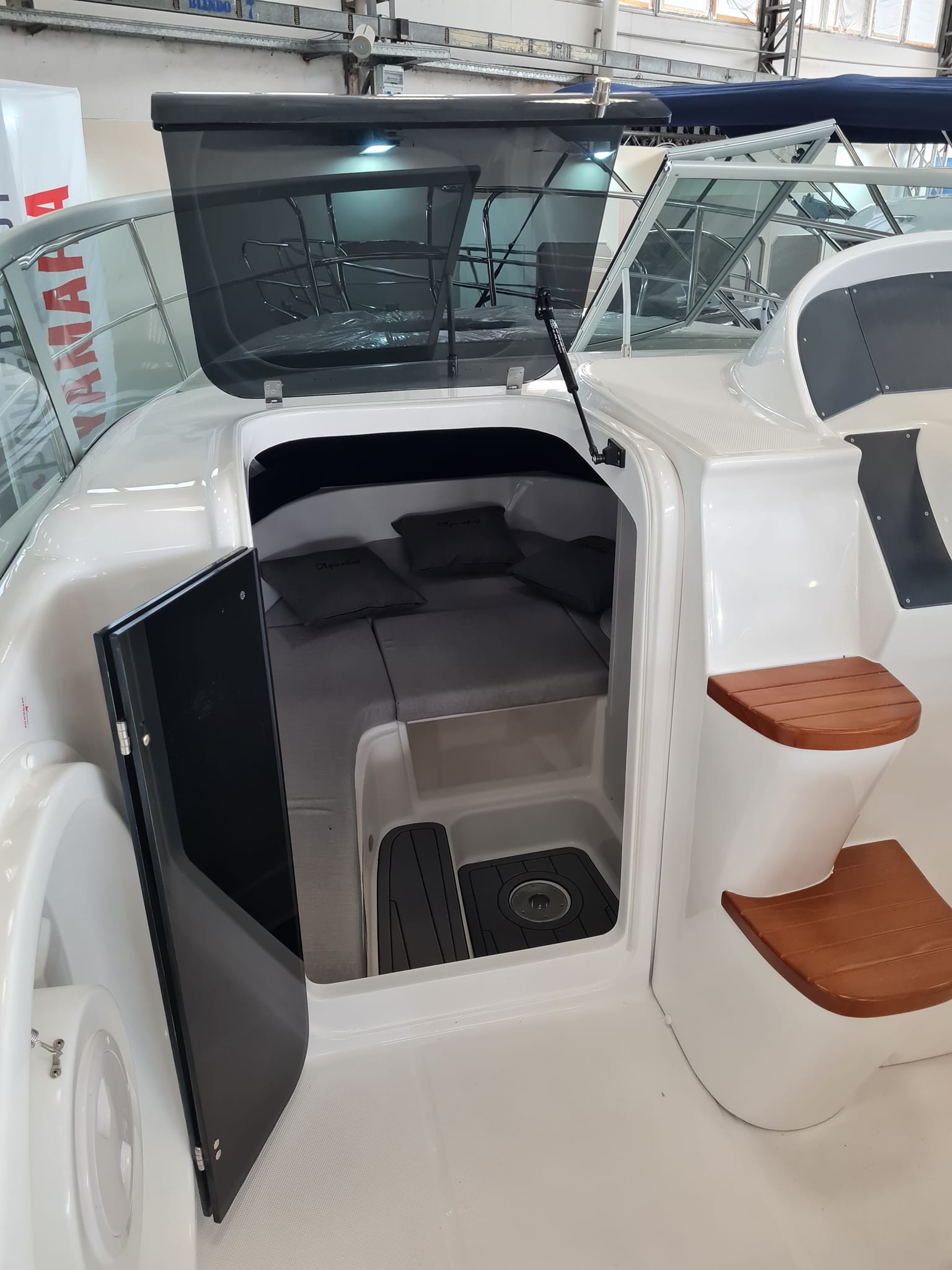 L’ Aquabat Sport Cruiser 23 è un cabinato dedicato a chi ama il comfort, la vivibilità a bordo e la sicurezza in mare. L’unione di eleganza e dinamicità sportiva, senza rinunciare a grandi spazi e cura del dettaglio, soddisfano tutte le esigenze. I 4 posti letto, con bagno separato danno il comfort interno che si estende poi all’esterno per mezzo del comodo passaggio a prua e l’ampio prendisole. La praticità culmina poi nella presenza della panca multifunzione con frigo, cucina e lavello. Tutto ciò che ti serve è proprio intorno a te!